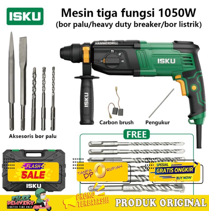 ISKU HAMMER DRILL MESIN BOR TEMBOK 750W/1050W BETON LISTRIK ELECTRIC HAMMER ROTARY - 1050W+BOR6PCS