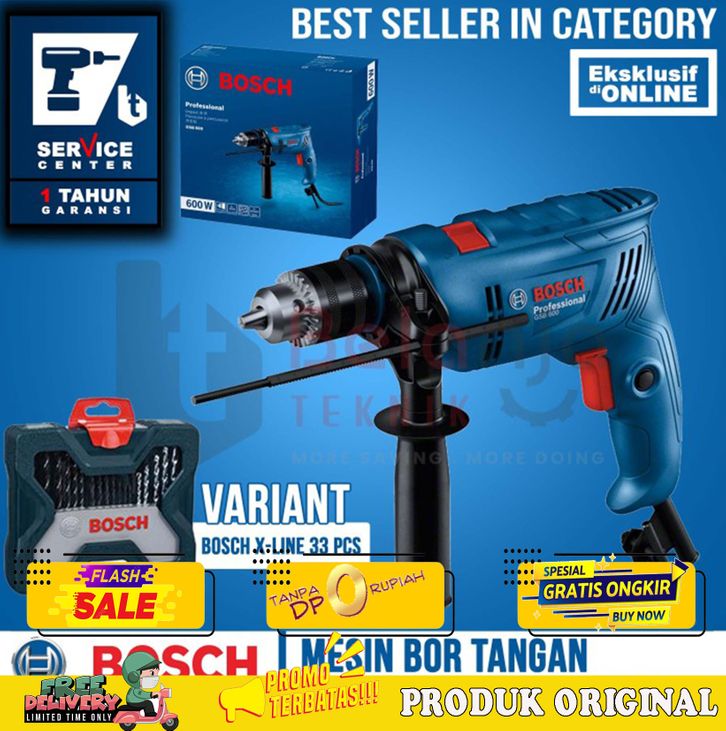 BOSCH GSB 600 MESIN BOR TANGAN LISTRIK BETON 13MM IMPACT DRILL 600WATT - X-LINE 33 PCS