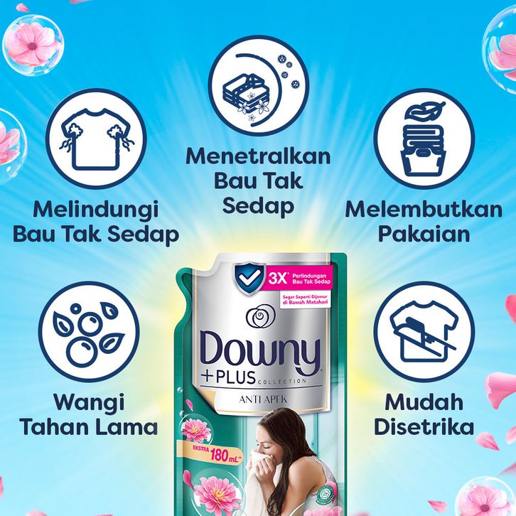 Downy + Collection Anti Apek Pewangi Pelembut Pakaian Refill 1.35L - Isi 3