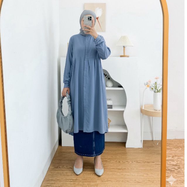 Tunik Wanita Terbaru 2025 LAURA LONG TUNIK MIDI OUTER WANITA RAYON POLOS LD100 LD110 LD120 Tunik Wanita Terbaru