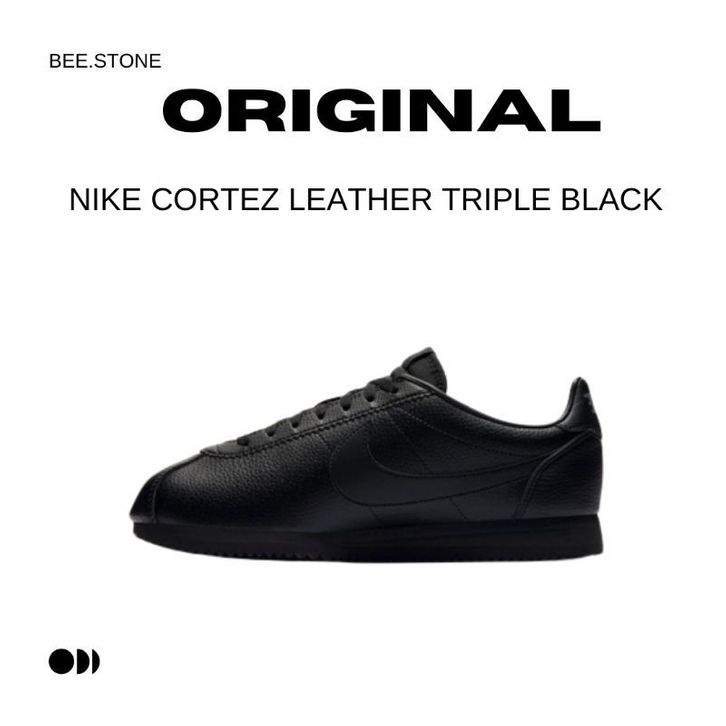 Sepatu Sneakers Nike Cortez Leather Triple Black Authentic BNIB Global