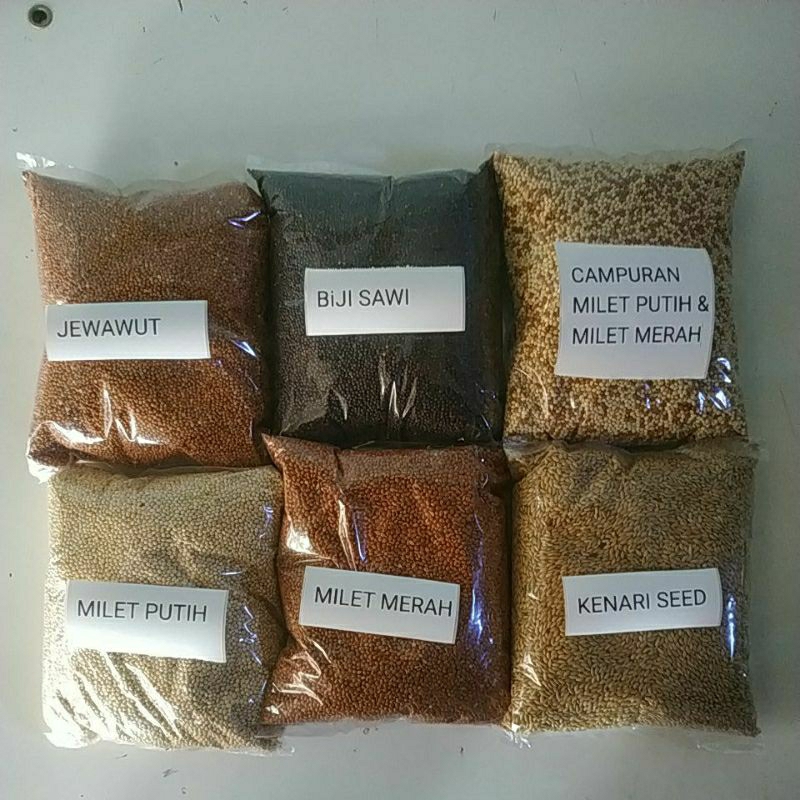 BIJI SAWI /JEWAWUT / MILET PAKAN CAMPURAN BURUNG KENARI BLACK TRUT SANGER PARKIT LOVEBIRD 500GRAM
