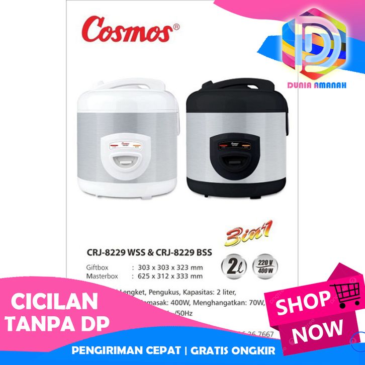 MAGIC COM / RICE COOKER COSMOS 8229 2,0 LITER STAINLESS TONGOLAN SUPER - MERAH MUDA