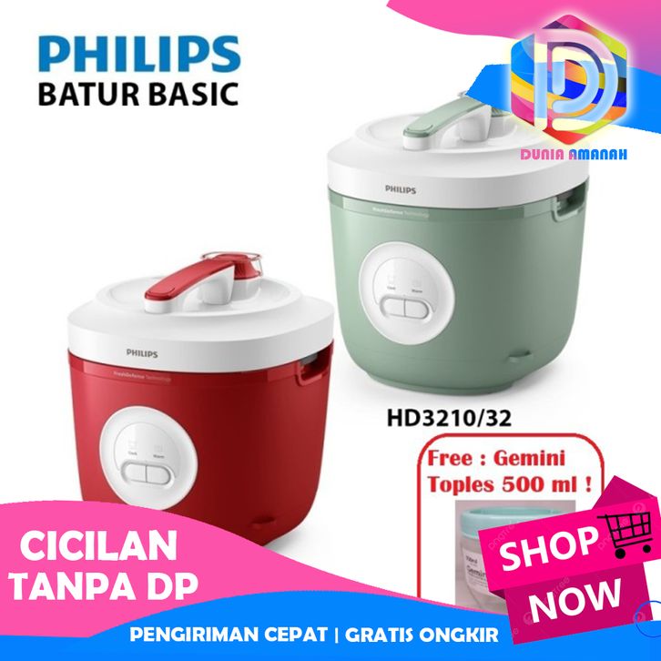 PHILIPS RICE COOKER HD 3210 MAGIC COM 1.8L - HD3210 BATUR BASIC - MERAH+GIFT