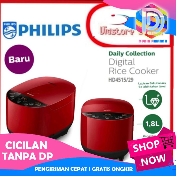 MAGIC COM PHILIPS DIGITAL RICE COOKER HD 4515 FUZZY LOGIC DIGITAL - 4MENU (MERAH)