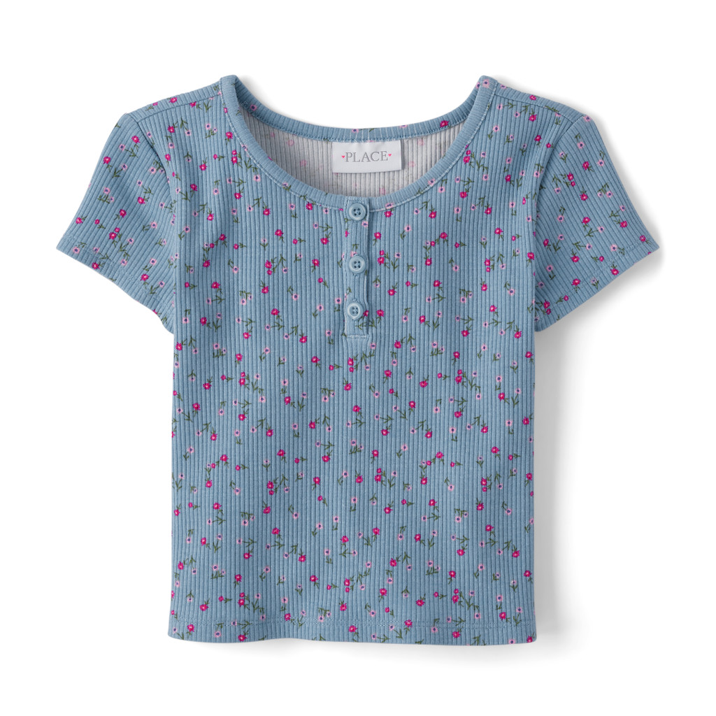 Girls Ribbed Henley Top - Atasan Anak Perempuan