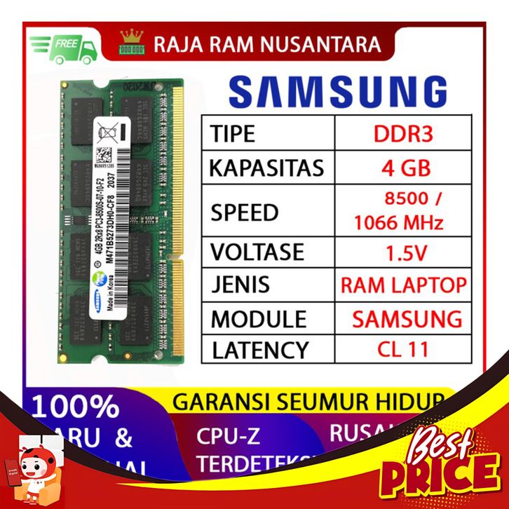 RAM LAPTOP SAMSUNG DDR3 4GB 8500 / 1066 MHZ ORI RAM SODIMM 1.5V 4GB