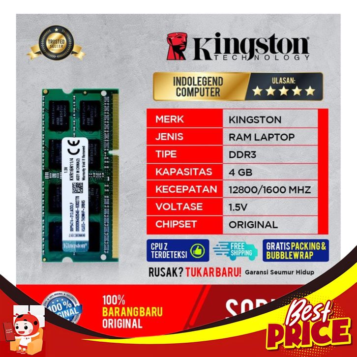 RAM KINGSTON SODIMM DDR3 4GB PC12800 1.5VOL