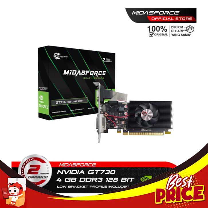 VGA MIDASFORCE NVIDIA GT730 DDR3 128 BIT 4GB LP GARANSI 2 TAHUN