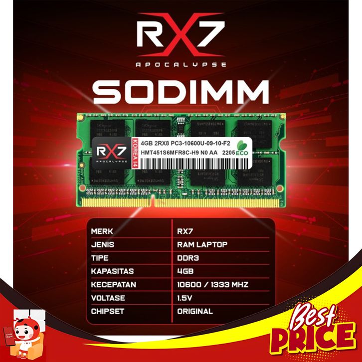 RAM LAPTOP RX7 DDR3 4GB 10600 MHZ NON L 1.5V GARANSI LIFETIME WARRANTY