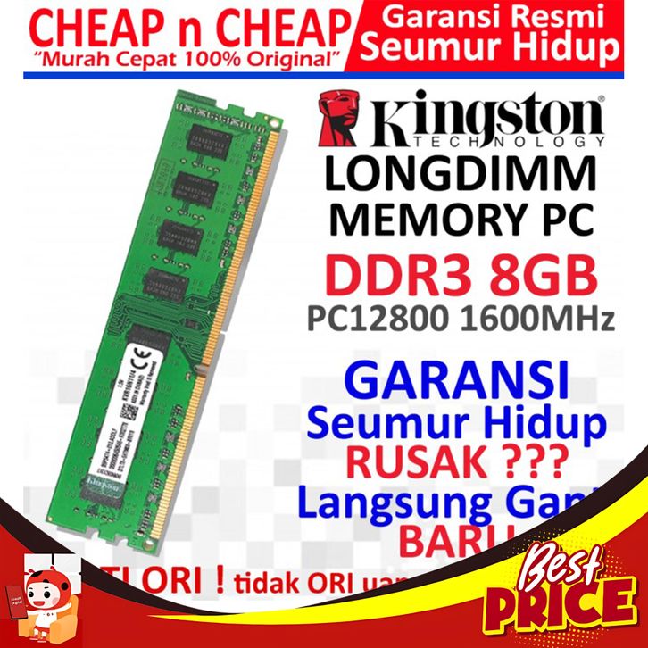 KINGSTON DDR3 8GB 1600MHZ PC12800 RAM PC - MEMORY LONGDIMM KOMPUTER CPU - KINGHM D3 4G PC