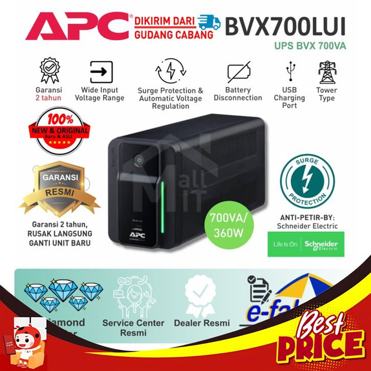 UPS APC 700VA 360W USB CHARGING BVX700 BVX 700 BVX-700 BVX700LUI-MS SURGE PROTECTION RESMI