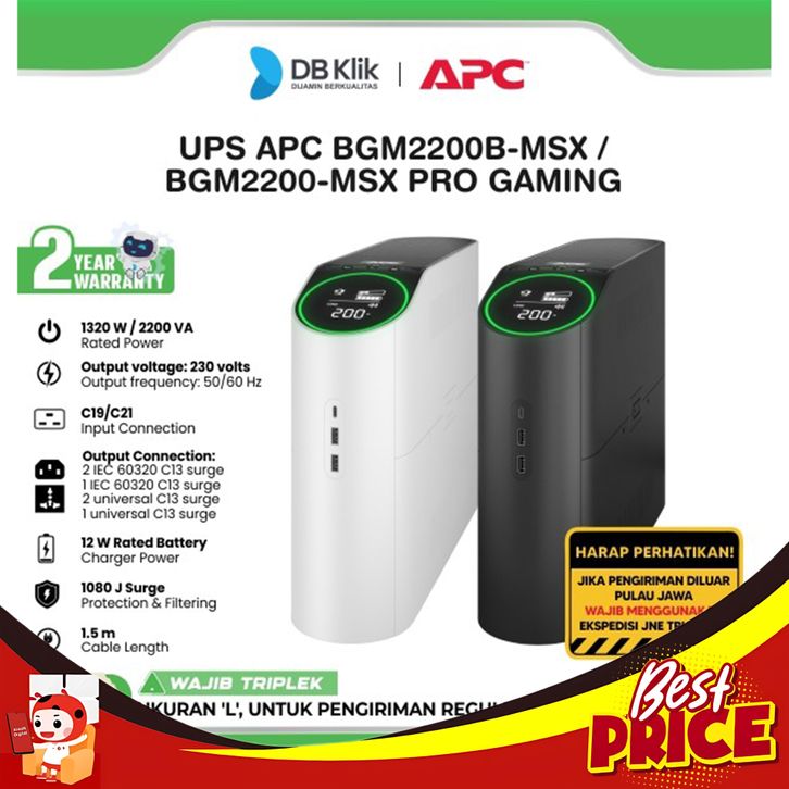 UPS APC BGM2200B-MSX / BGM2200-MSX PRO GAMING SINEWAVE 2200VA 1320W PURE SINE WAVE - BLACK