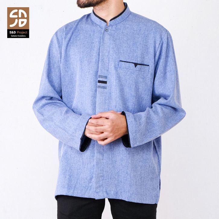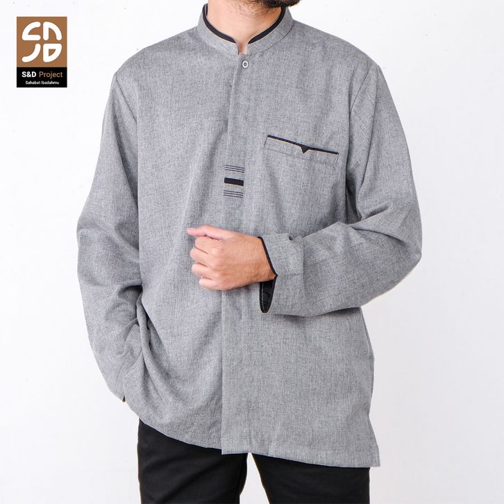 S&D Project Baju Koko Katun Madinah Polos Lengan Panjang Ukuran M L XL - Warna Abu Muda