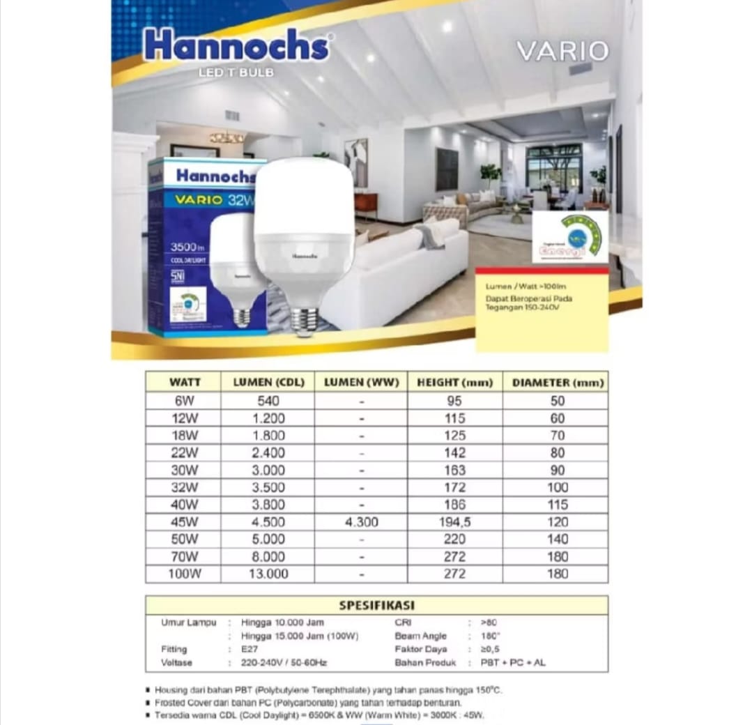 Bohlam led capsule hannochs vario 6W,12W,18W,22W,30W,32W,40W,45W Lampu led hannochs vario
