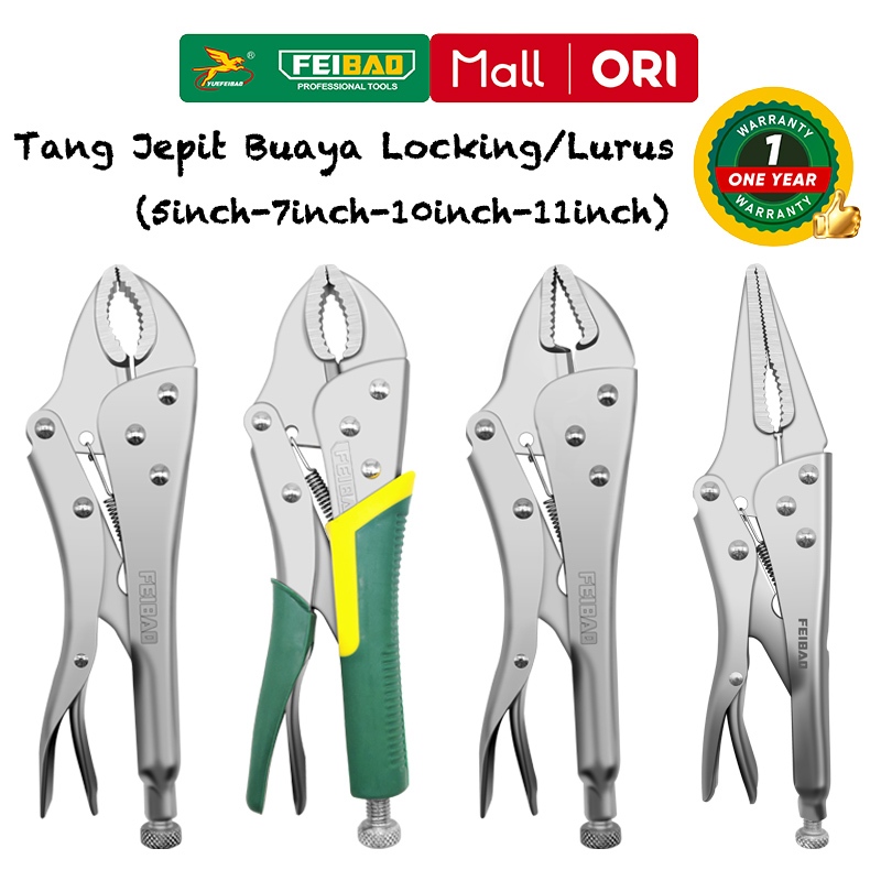 Feibao Tang Jepit Buaya Bengkok 5 7 10 11 Inch Locking Pliers Baja Kuat Pengunci Round Jaw Premium