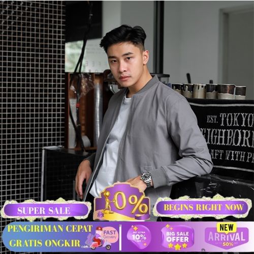 JAKET CANVAS PREMIUM GREY / JAKET PRIA / JAKET BOMBER - M