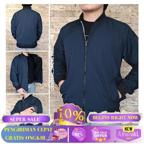JAKET BOMBER PRIA BOLAK BALIK - JAKET BOMBER PARASUT TASLAN WATERPROOF - NAVY, L