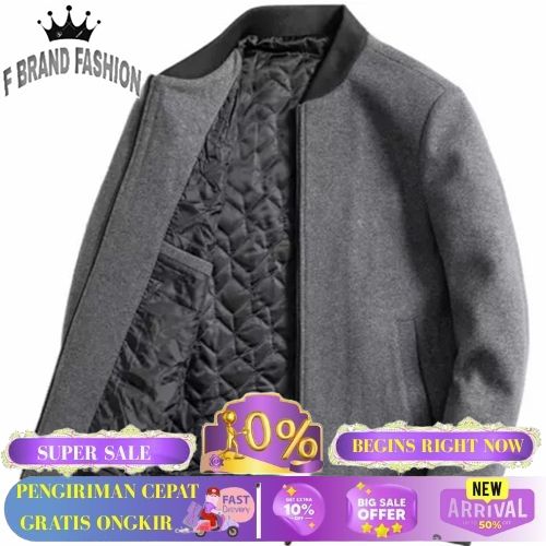 F BRAND FASHION JAKET FORMAL BOMBER/JAKET BOMBER/JAKET PRIA TEBARU - ABU-ABU, M