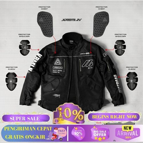 KREMLIN JACKET BLACK BIKER CYBERPUNK MOTOR - METACRUSH V.2 - HITAM - XXXL