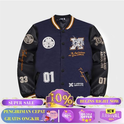 X URBAND ABSOLUTE JAKET VARSITY BOMBER BASEBALL UNIVERSITAS UNISEX 228 - NAVY HITAM, XL