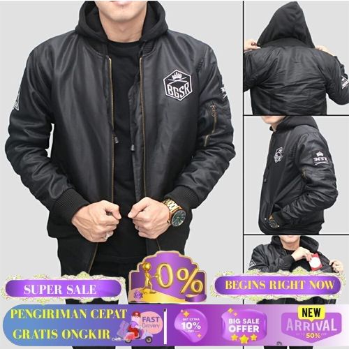 JAKET BOMBER HOODIE BGSR - HITAM, L