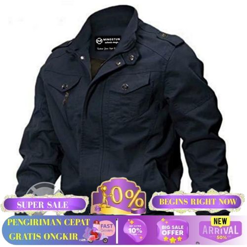 JAKET PRIA BOMBER KLASIK MILITARY ORIGINAL BAHAN CANVAS M-L-XL-XXL - NAVY, XL