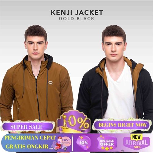 TERBARU JAKET PARASUT WATERPROOF PRIA JAKET PARKA BOMBER WINDBREAKER - GOLD BLACK, XL