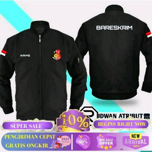 JAKET BOMBER HITAM BAHAN TASLAND LOGO BARESKRIM + NAMA FREE SIMPLE - NAVY, M