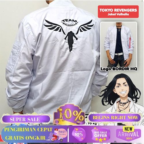 JAKET BOMBER ANIME TOKYO REVENGERS VALHALLA KEISUKE BAJI MANGA WHITE - XXL