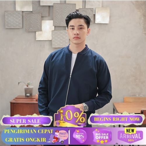 DELIBRA JAKET CANVAS PREMIUM NAVY / JAKET PRIA / JAKET BOMBER - M