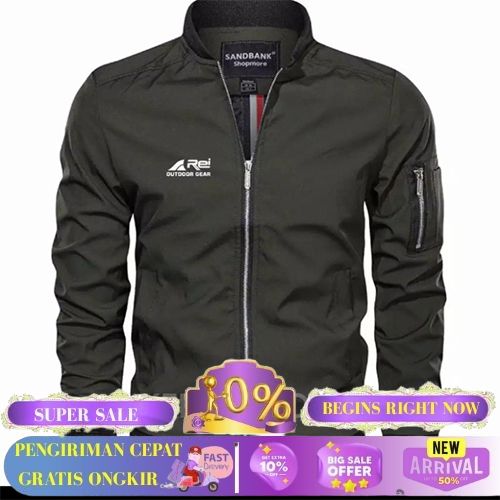 JAKET BOMBER KASUAL PREMIUM PARASUT SEMI ANTI AIR PRIA WANITA REI OUTD - HIJAU, M