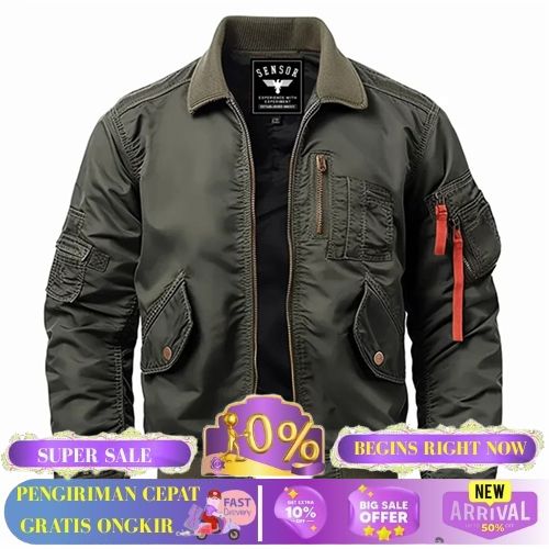 JAKET BOMBER PILOT MILITARY SENSOR / JAKET BOMBER TASLAN WATERPROOF - HIJAU, M