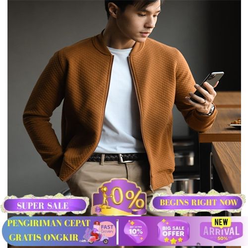 JAKET BOMBER COMFY PRIA CASUAL BAHAN KATUN - KUBUS, XL