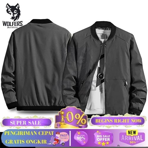 JAKET BOMBER PRIA CASUAL PARASUT ANTI AIR WOLFERS ABU TUA - M
