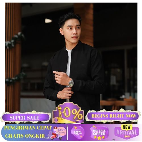 DELIBRA - JAKET CANVAS BOMBER PRIA PREMIUM - HITAM, XL