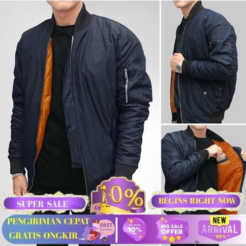 JAKET BOMBER PRIA PREMIUM BIG SIZE JUMBO M L XL XXL XXXL 4XL - NAVY, M