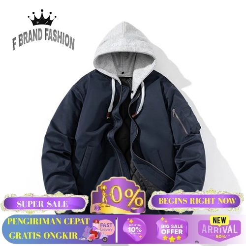 JAKER BOMBER PRIA HOODIE / JAKET HOODIE / JAKET BOMBER / JAKET PRIA - BIRU NAVY, S