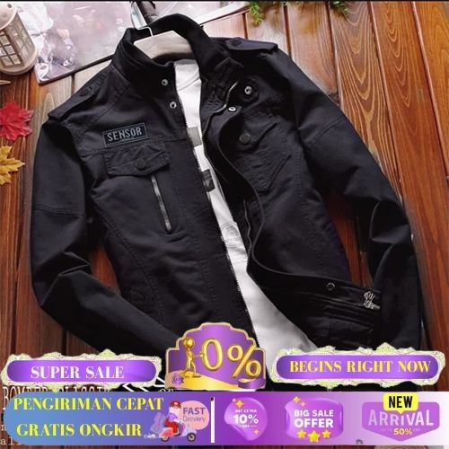 CODE.ID JAKET BOMBER CANVAS CLASSIK PRIA - COKELAT, M
