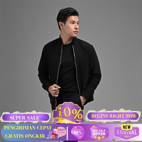 JAKET BOMBER SANTAI BAHAN CANVAS DENGAN FURING ADEM TERSEDIA 5 WARNA - HITAM, M