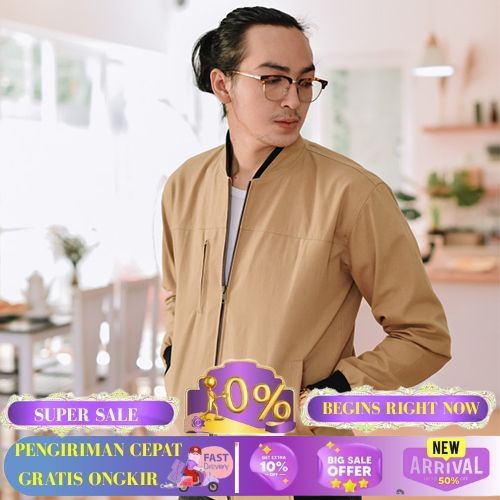 JAKET PRIA BOMBER CREAM MODEL HELIO PREMIUM - CREAM, L