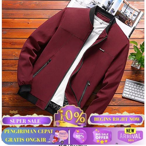 JAKET FORMAL PRIA KATUN BERKUALITAS - JAKET PRIA BOMBER - JAKET CASUAL - MARUN, S