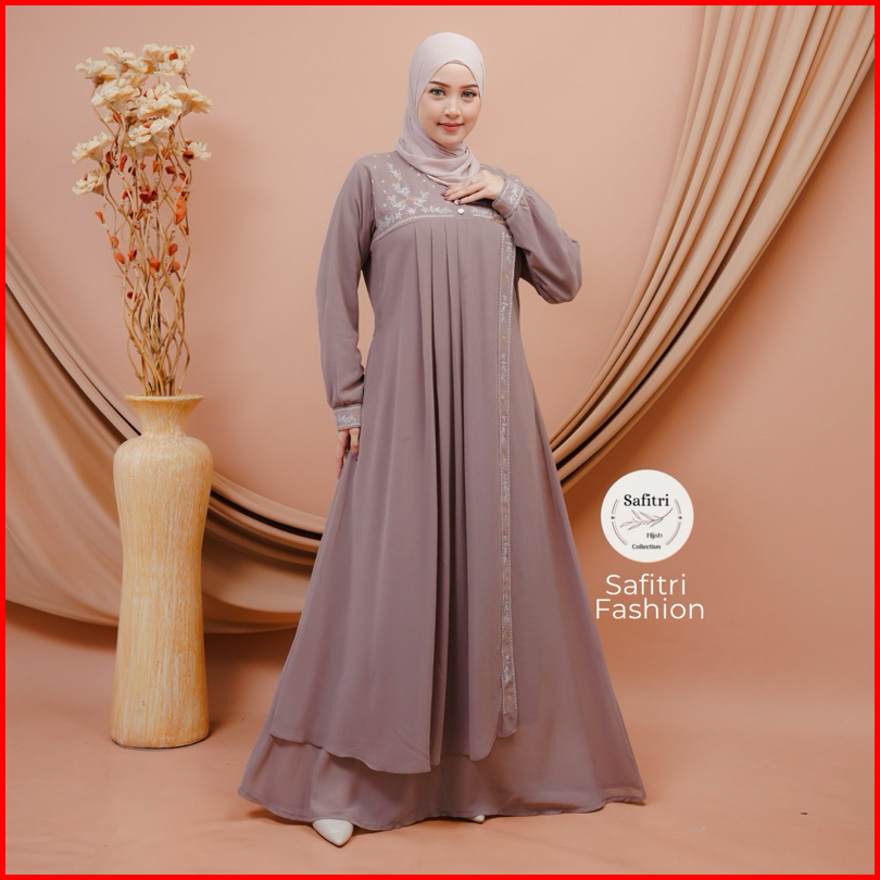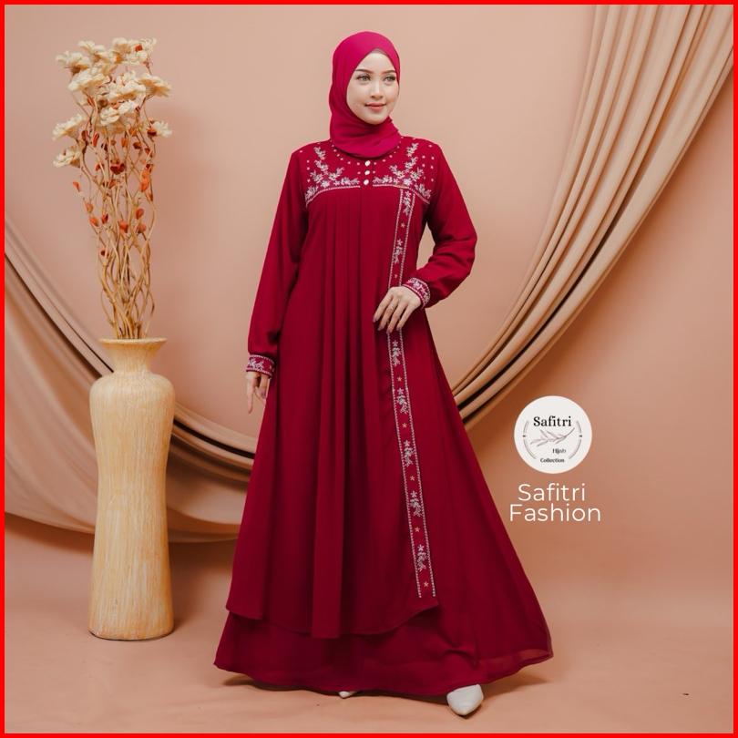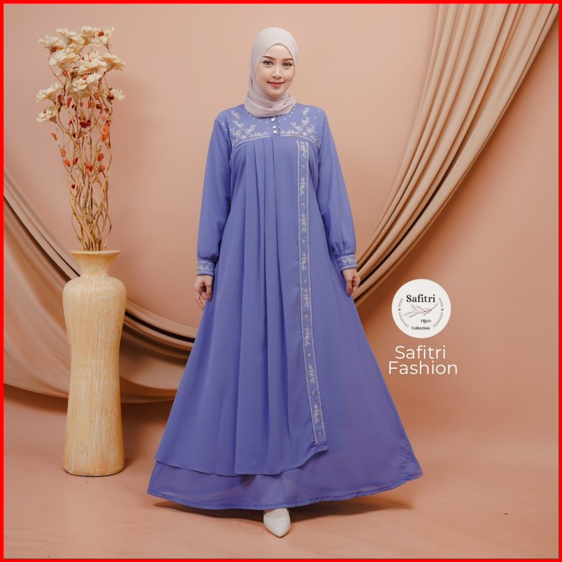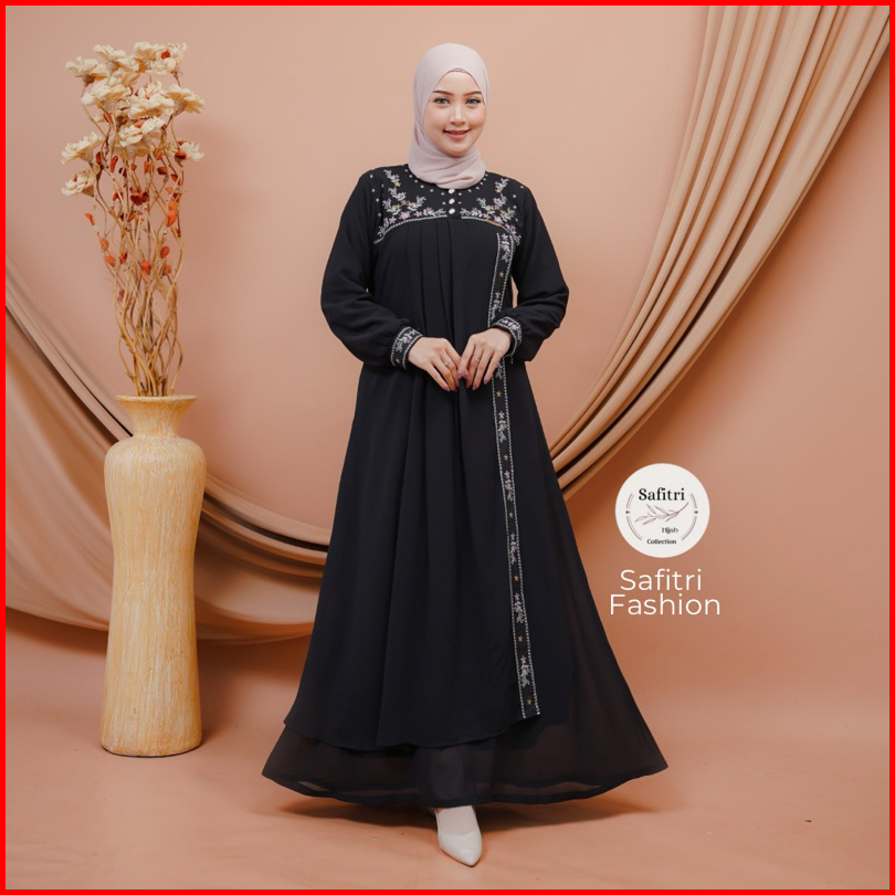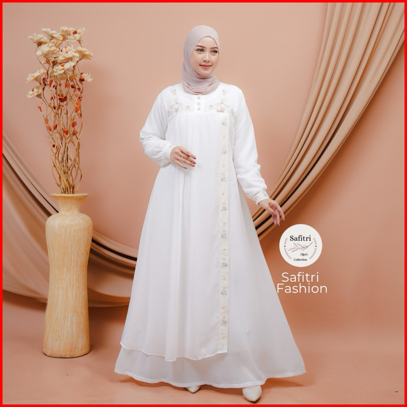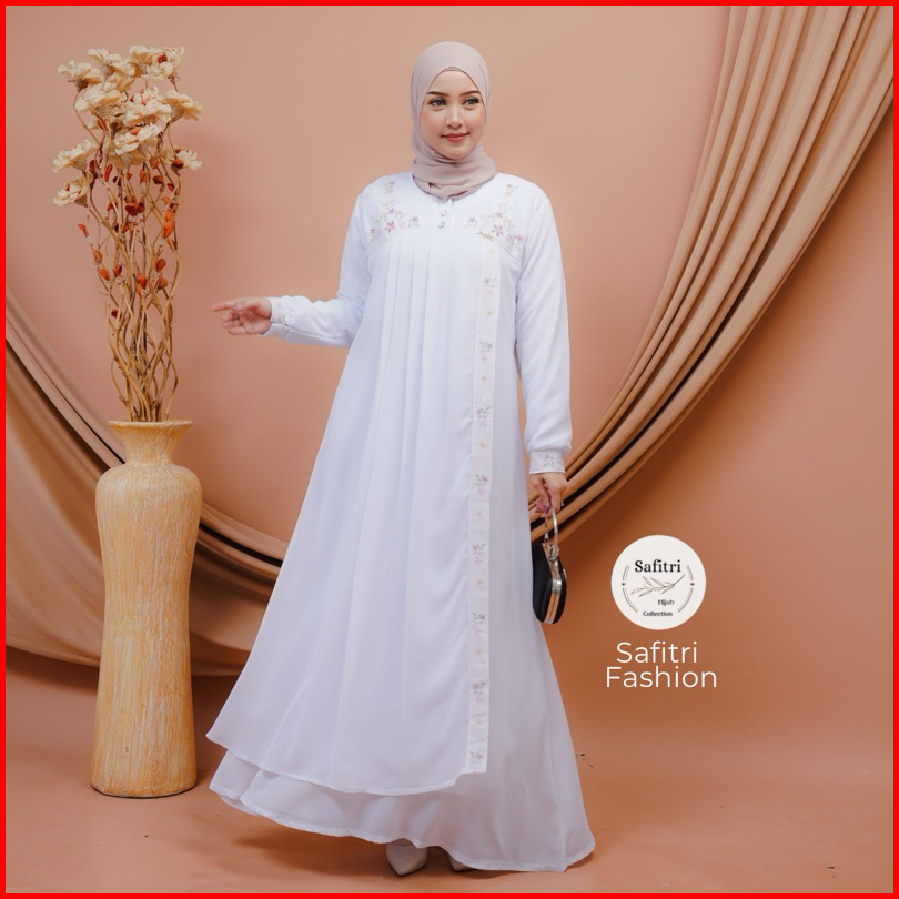 Jasmine Dress Gamis Bahan Ceruty Babydol Kombinasi Bordir Mewah Kondangan Pesta Lebaran Manasik Haji Umroh Ihram Fashion
