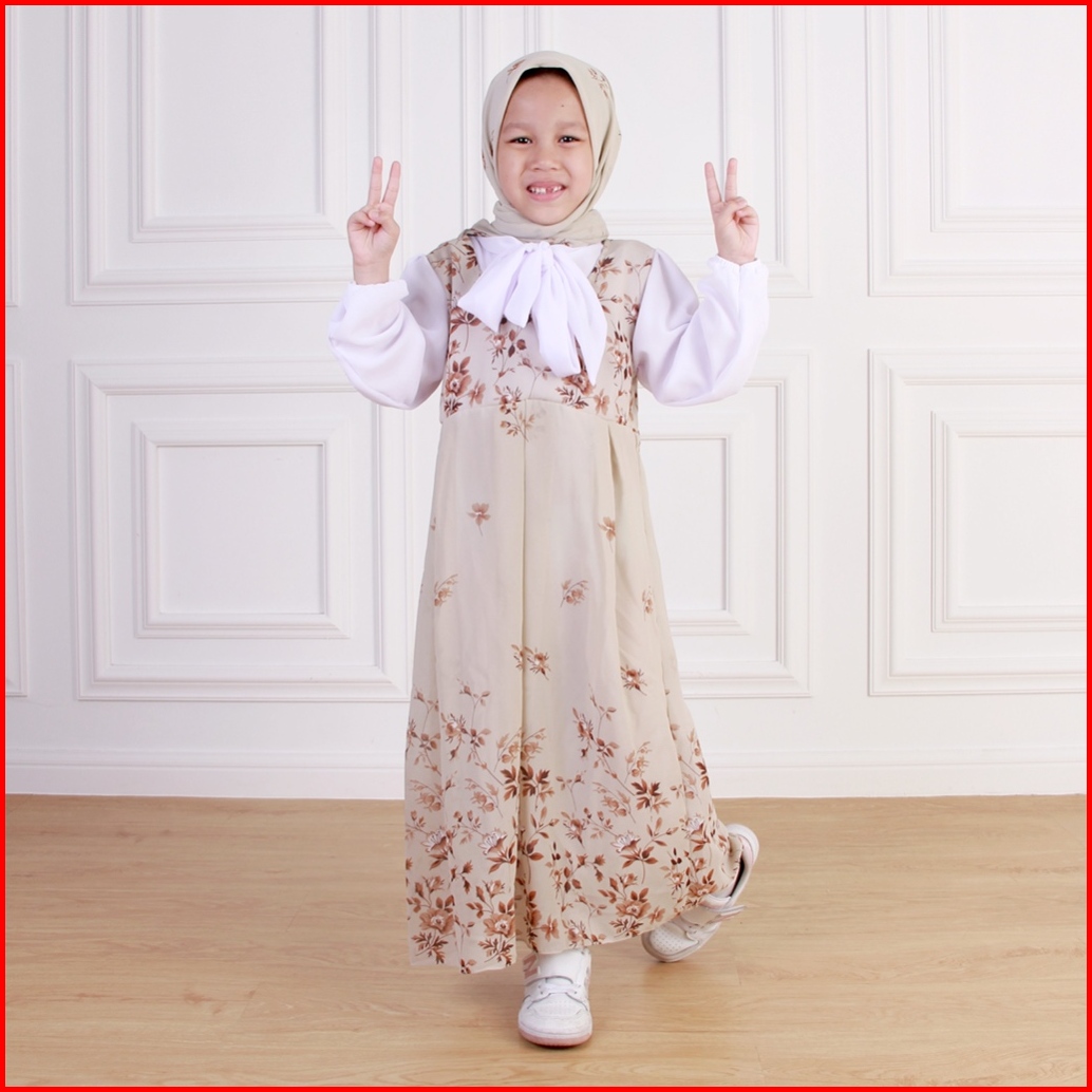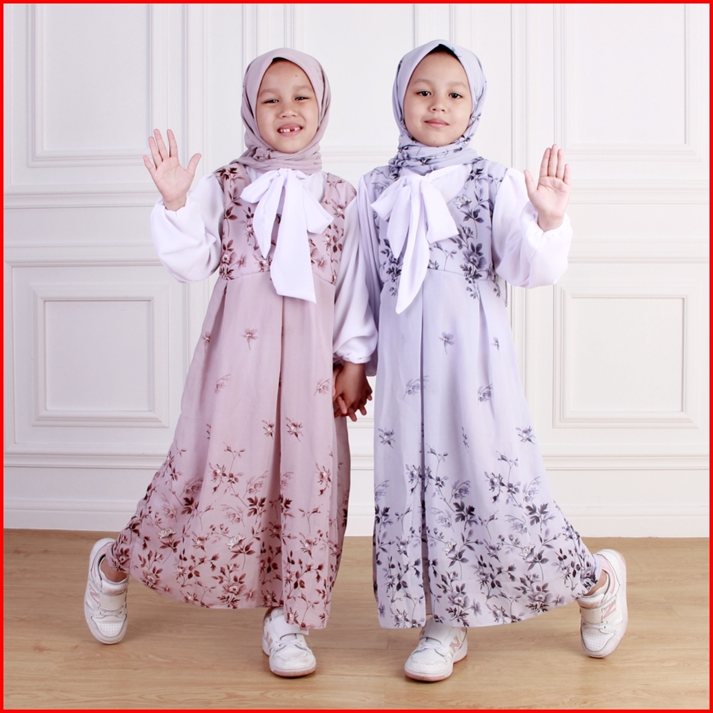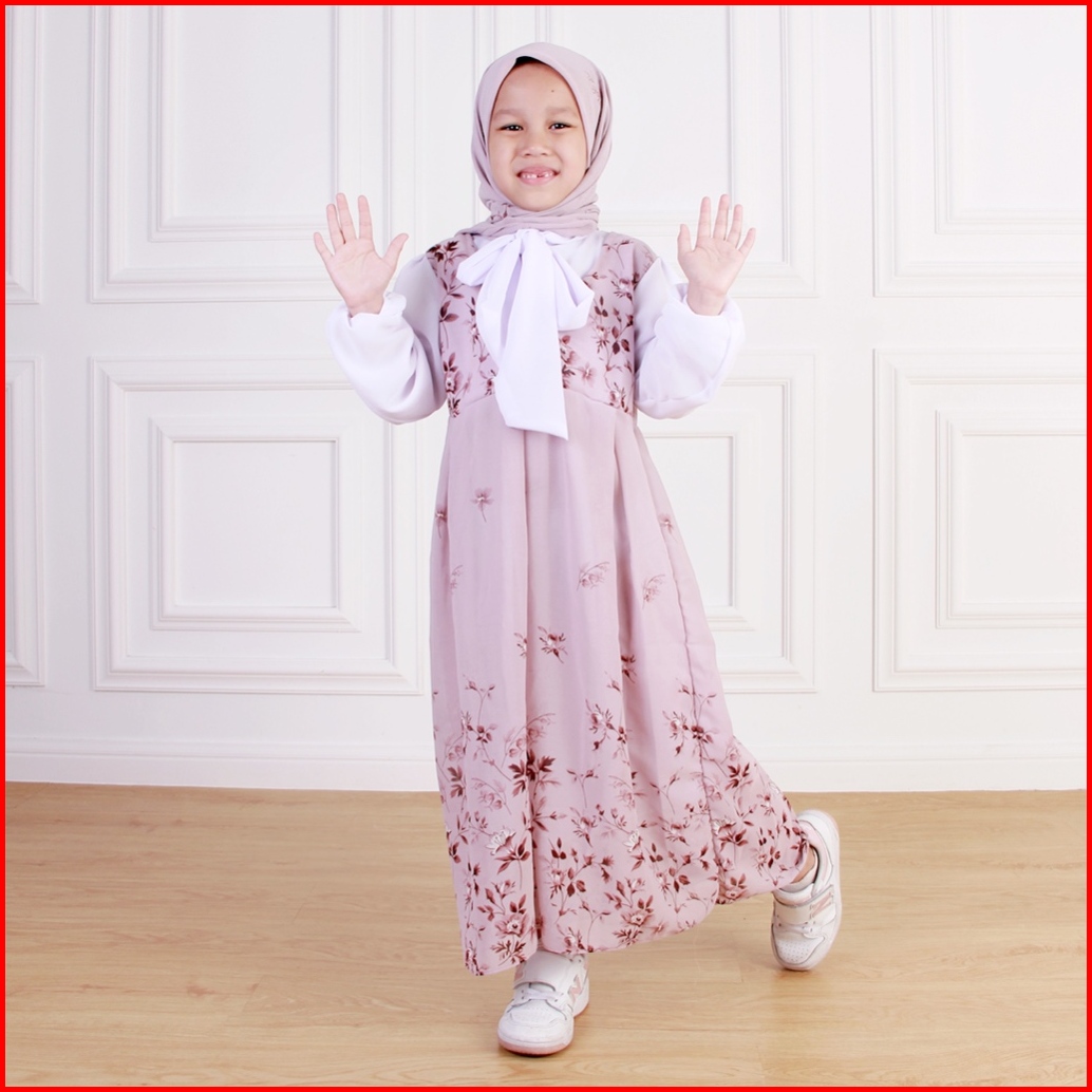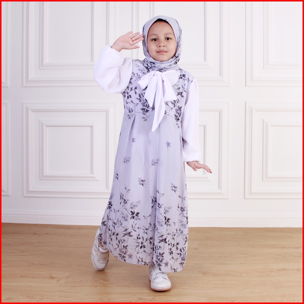 Dungdungkids Gamis Anak Keysa Ceruty Etnik Free Pashmina 3 - 11 Tahun