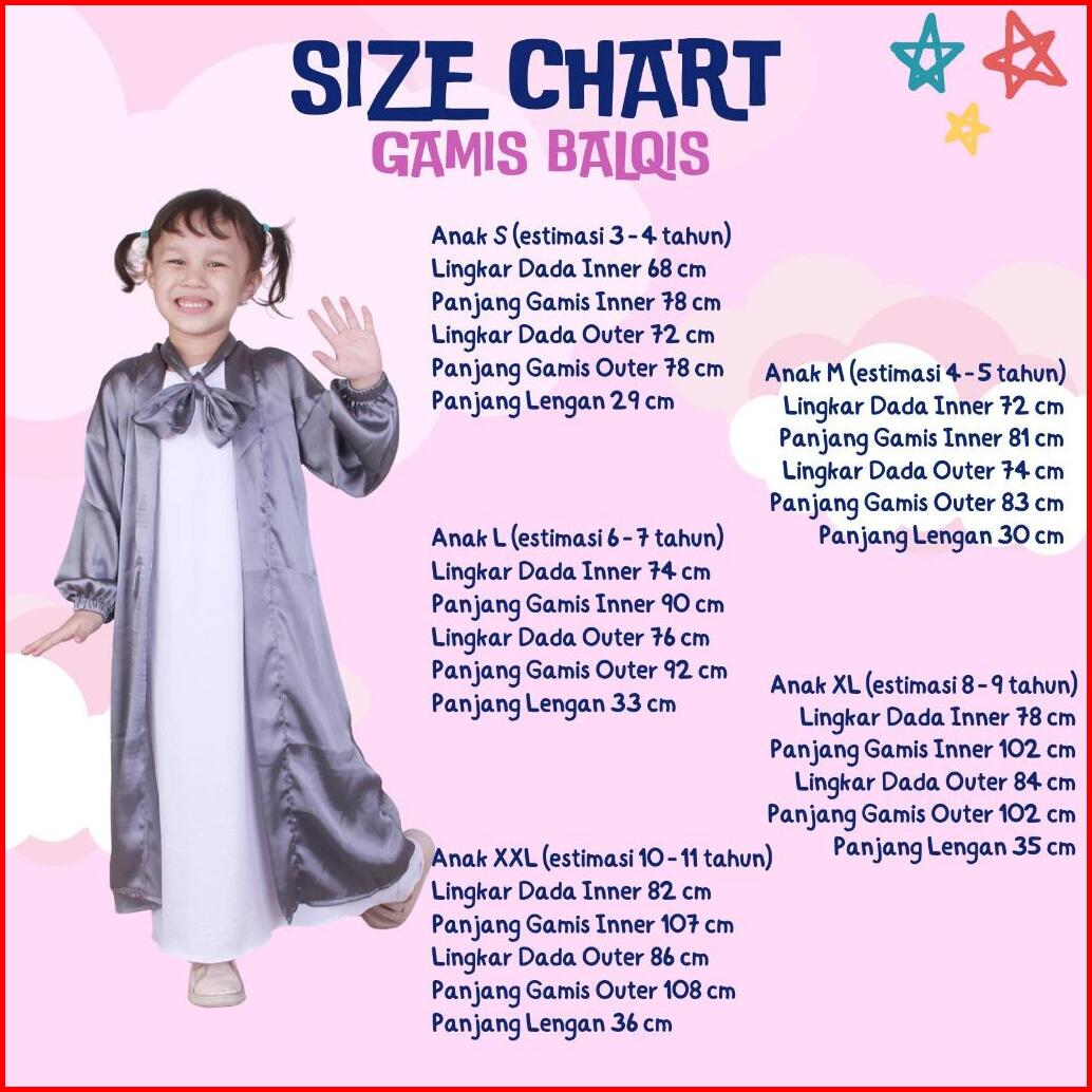 S (3-4 tahun), M (4-5 tahun), L (6-7 tahun), XL (8-9 tahun), XXL (10-11 tahun)