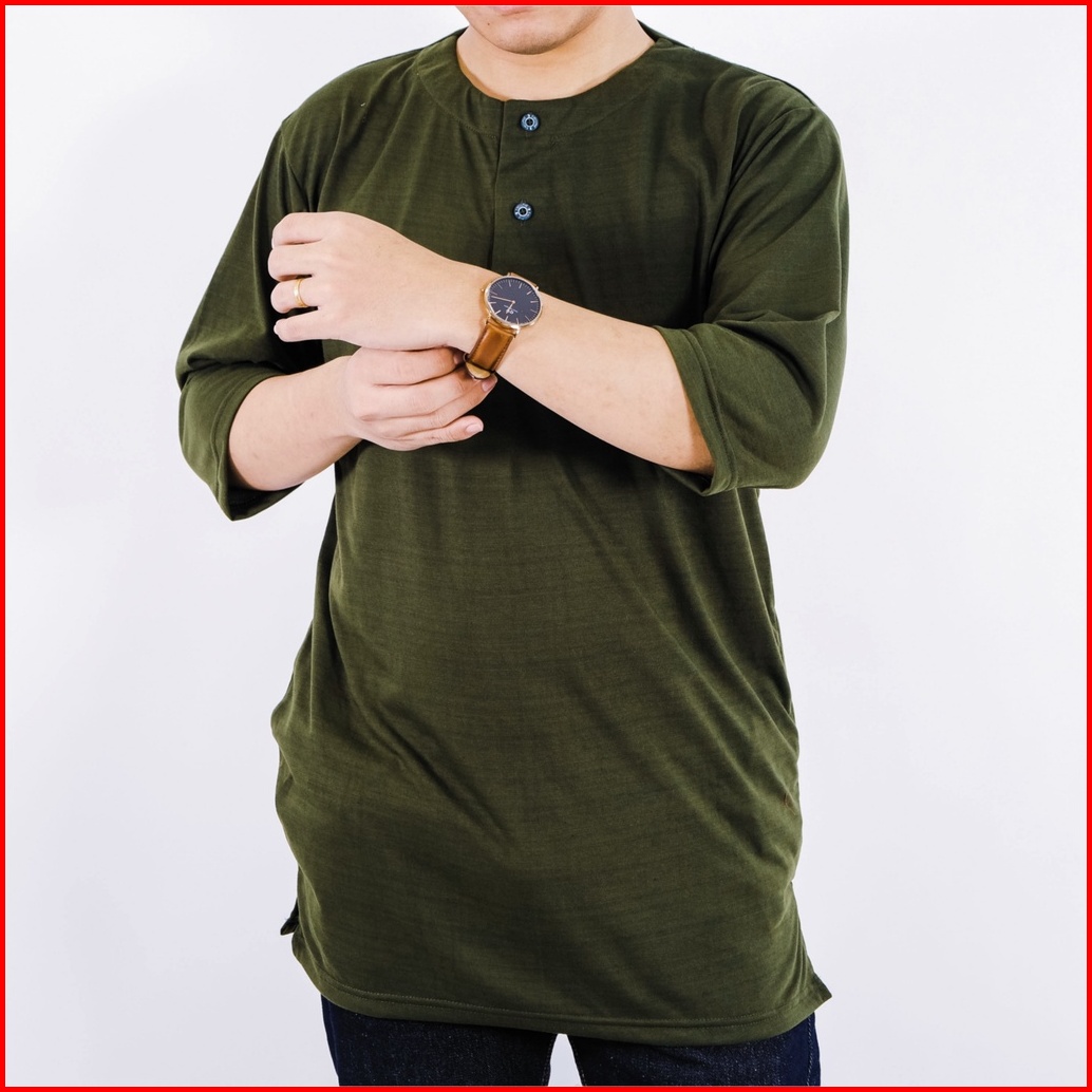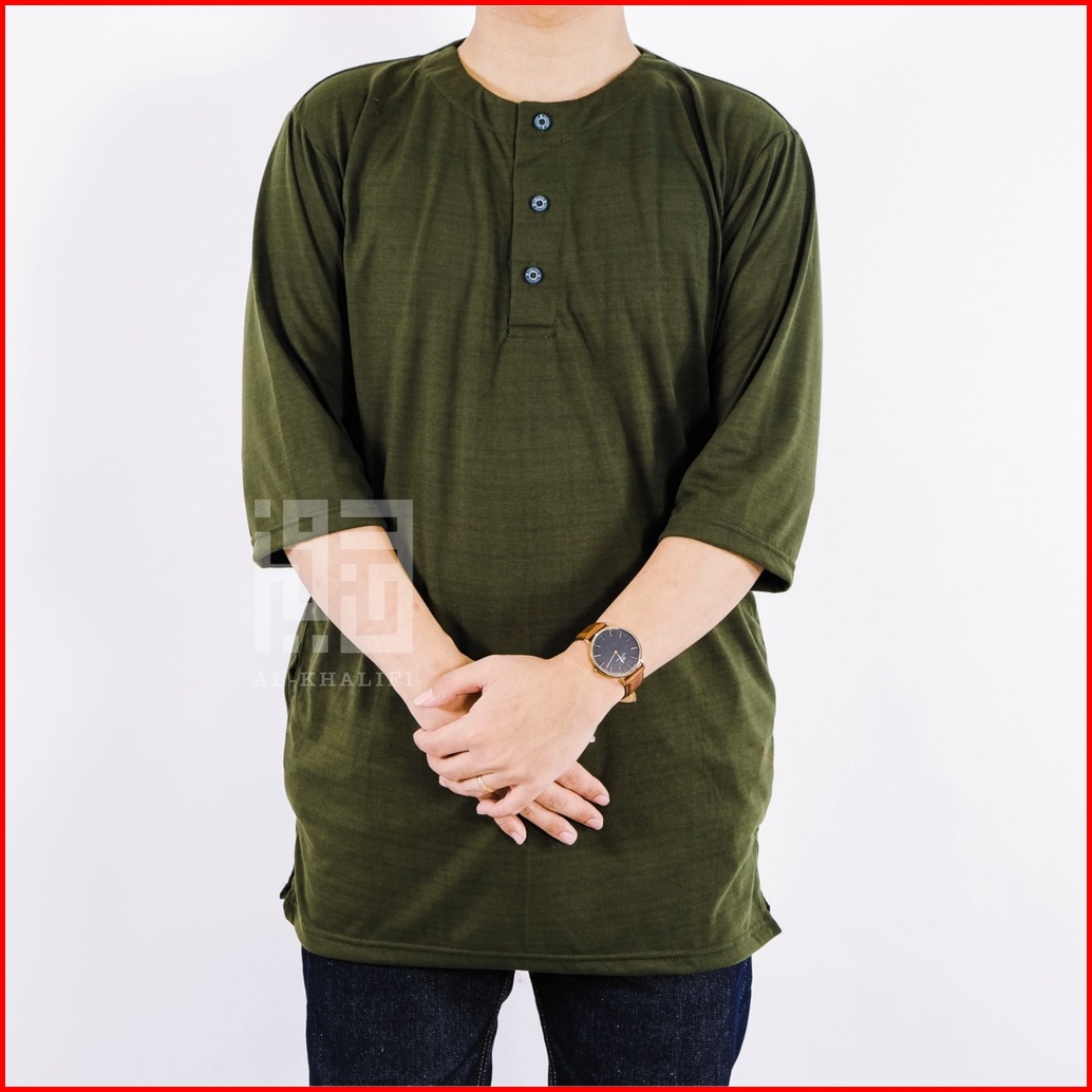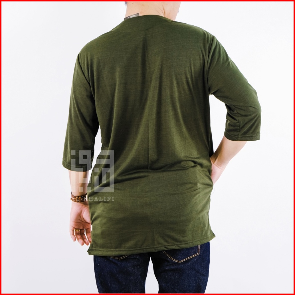 Al-khalifi - Kurta Pakistan Bahan Kaos Lengan 3 4 Baju Koko Premium - Hijau Army