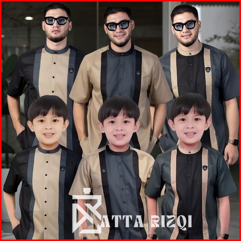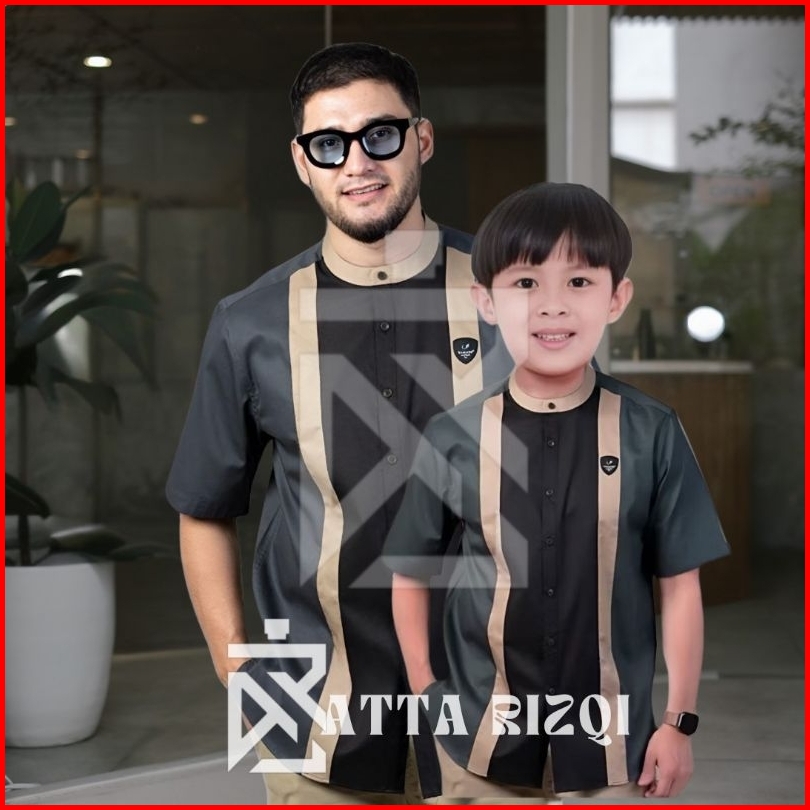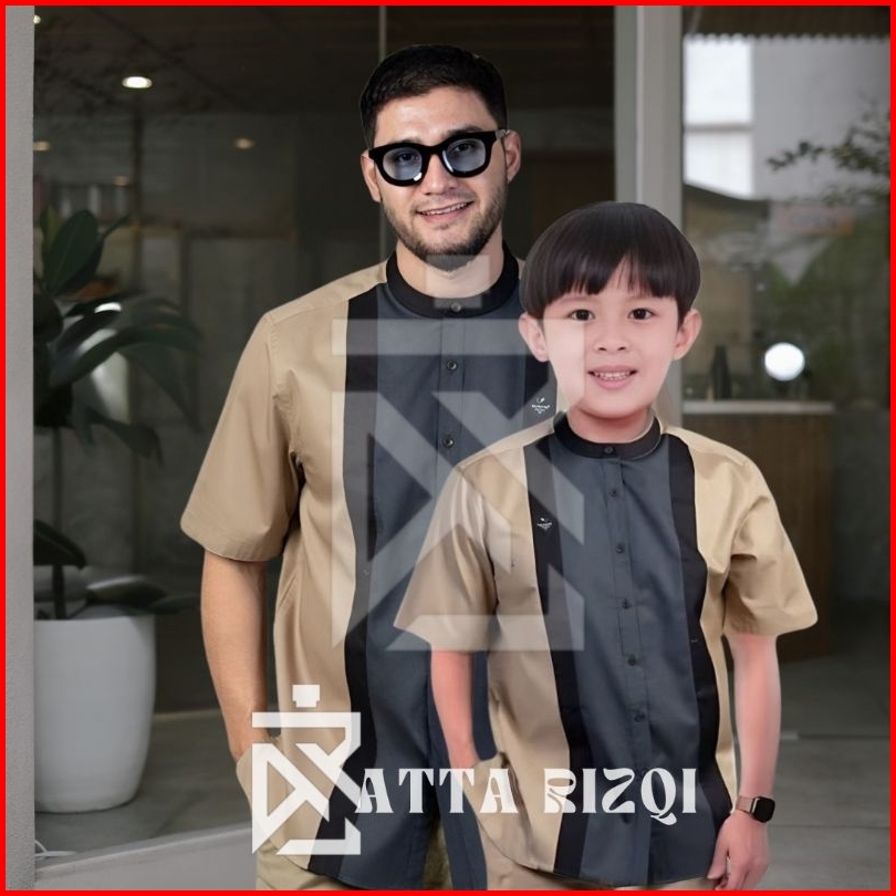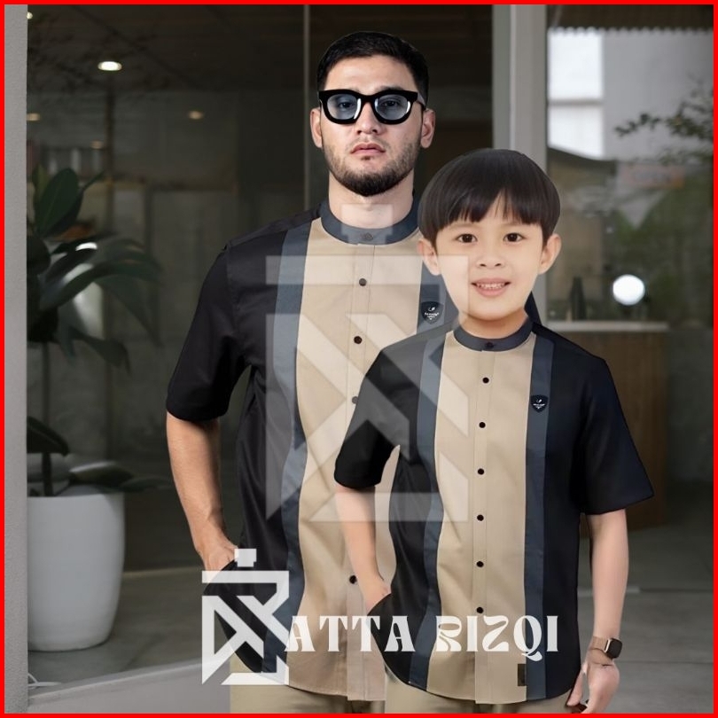 Baju Koko Couple Ayah Dan Anak Laki Laki Baju Koko Kurta Lengan Pendek Motif Candle Bahan Premium Quality