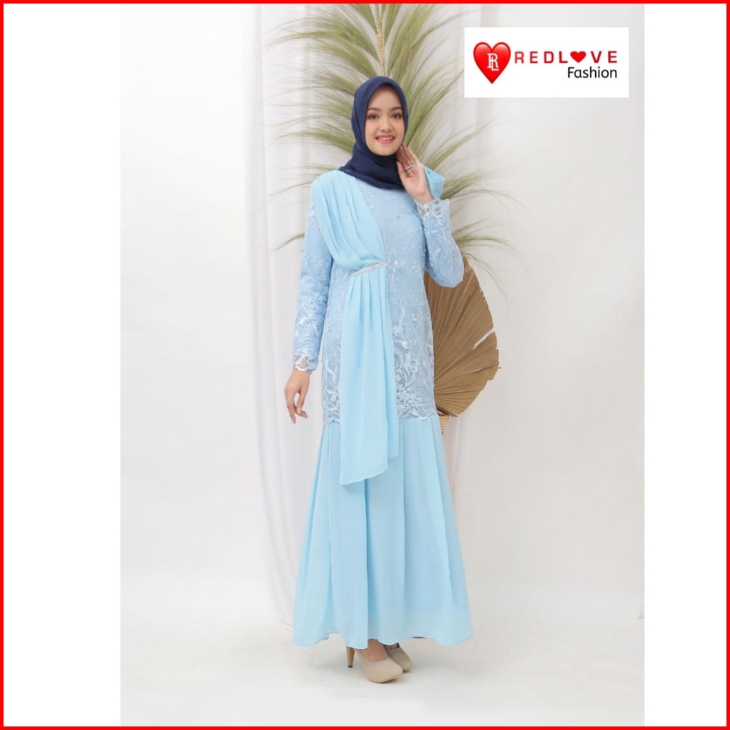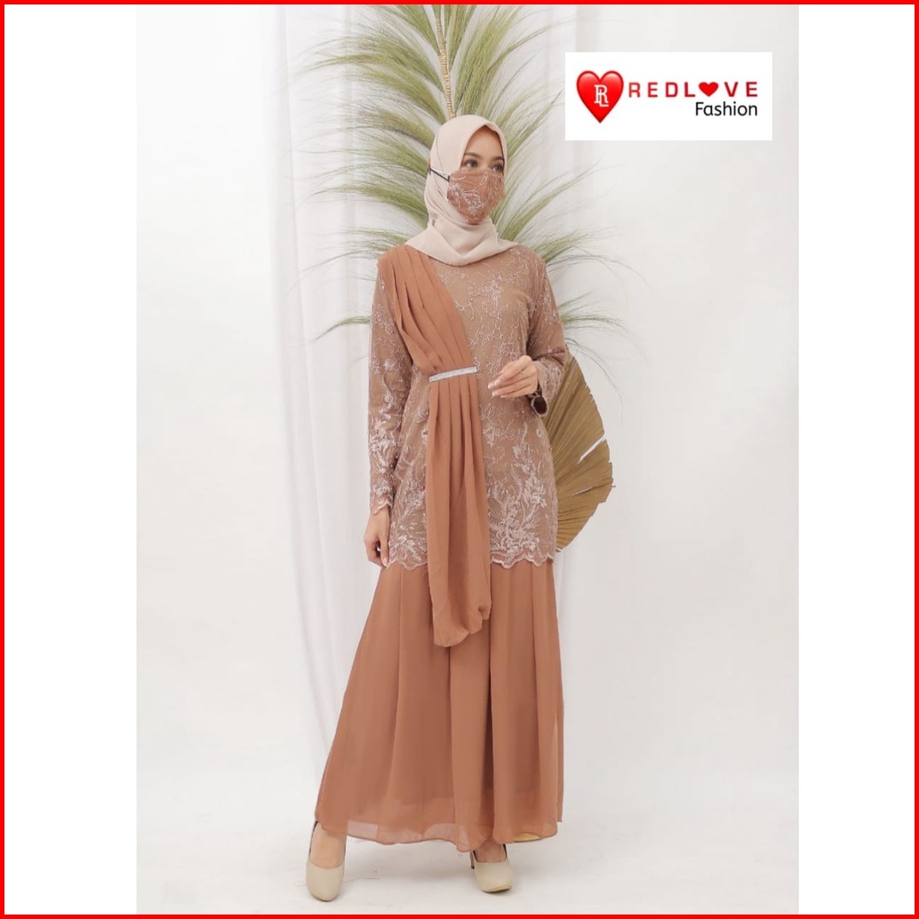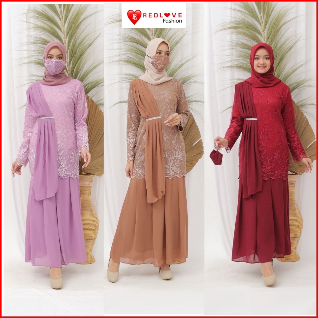 Redlove - Gamis Baju Muslim Kebaya Selendang Tile Mutiara Kebaya Modern