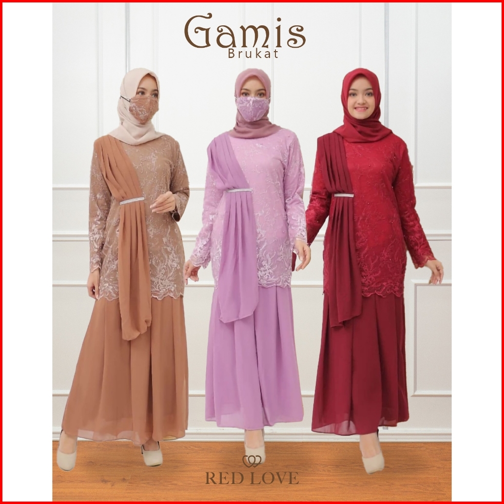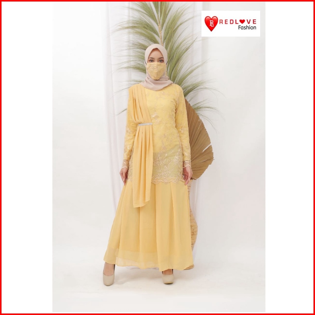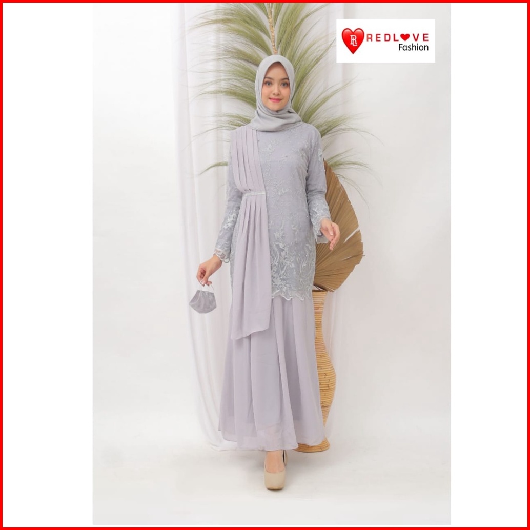 Redlove - Gamis Baju Muslim Kebaya Selendang Tile Mutiara Kebaya Modern