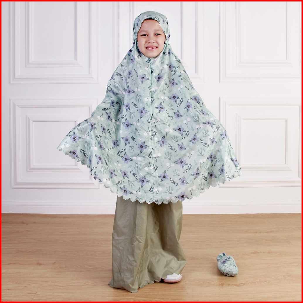 Dungdungkids Mukena Travel Anak Parasut Korea Motif Premium Mini Pouch Dhahnia 5 - 15 Tahun
